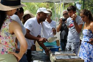 The Jamaica CoralCarib team visited the East Portland refugia site, where they explored the nursery setup and engaged in a collaborative session with the Coral Restoration Foundation, the largest reef restoration organization in the world. The Haiti team confirmed the Baraderes-Cayemite marine protected area in the southwest of the country as the outplanting location for the refugia site. In December, the team, alongside the Haiti Ocean Project, recorded depth, documented coral species and took photographs of areas with potential for outplanting. Additionally, our local implementing partner, the Initiative for Environment and Integrated Development in Haiti (IEDIH), convened a meeting of government partners and local stakeholders to assess the main threats to the marine and coastal biodiversity within the Baraderes-Cayemite climate refuge. The Haiti team has conducted multiple learning exchanges and is building community awareness to ready local communities for involvement in the project.
