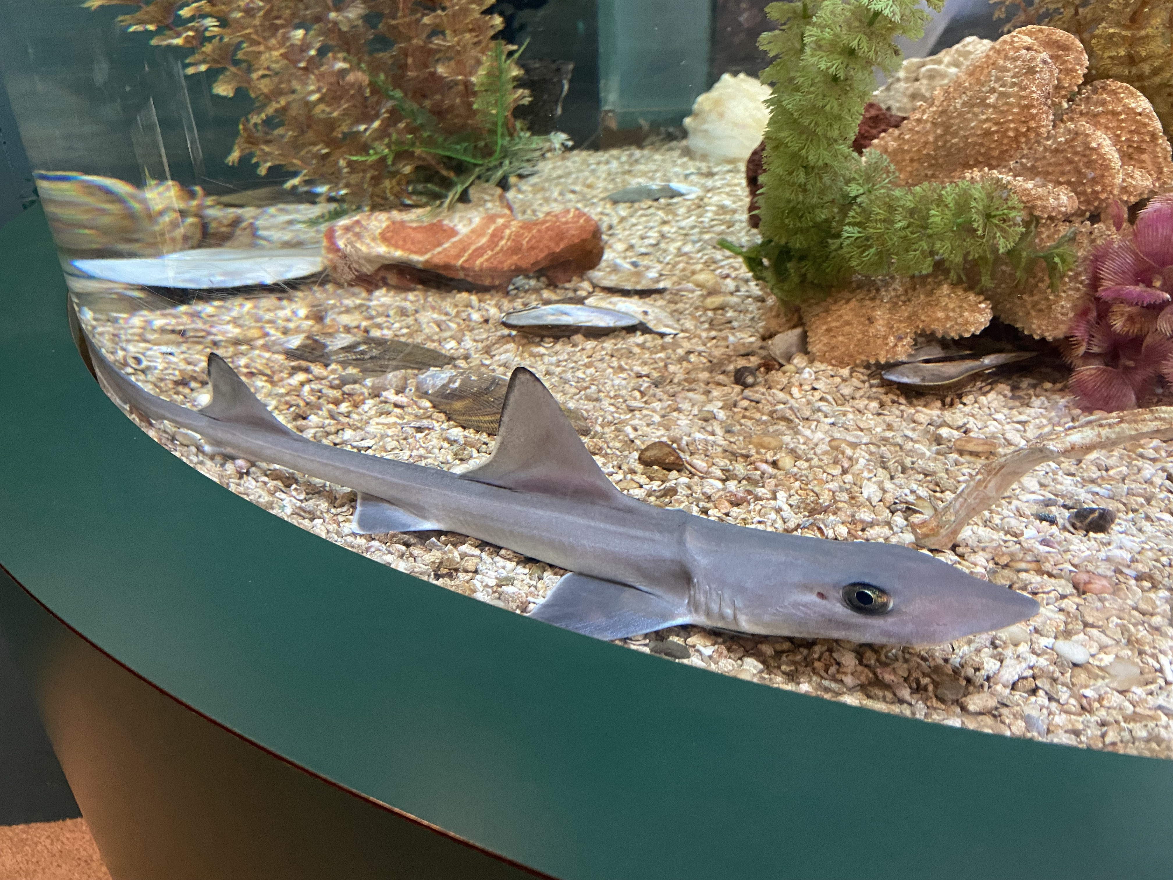 Fun Fact: Smooth dogfish feed on crustaceans, squid, bony fish and small shellfish, using their tiny, rounded teeth to crush prey. They are also a favorite food of sand tiger sharks.