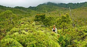 This TNC Preserve nurtures many rare and endangered plant species, including the showy Lobelia kauaensis, with its tall spire of white-petaled flowers streaked with purple. Tiny endangered bog violets can be found in the bog along with carnivorous sundews (mikinalo) that trap insects on their sticky leaves.