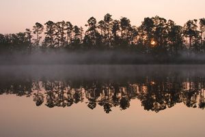 In many ways the centerpiece of the preserve, Black Lake, offers a perfect mirror image of wildlife, foliage and sky. Since the 1950s, the lake had been blocked by a series of culverts. TNC restored the aquatic system by removing these culverts and reconnecting the stream with its natural floodplain. This tidally influenced lake is bordered by sawgrass flats that give way to bald cypress and atlantic white-cedar ponds. The rare panhandle lily is usually found flowering in mid-summer along its banks.