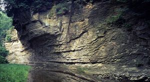 First designated as a National Natural Landmark in 1968, Pine Hills in Montgomery County became Indiana's first dedicated nature preserve in 1969. It is a remarkable example of the natural beauty our state has to offer. Hogback ridges with steep dropoffs, craggy hills, deep gorges, and extensive sandstone bluffs are covered with stands of evergreens and hardwood trees. It is truly an outstanding natural area, and well-deserving of the praises so many Hoosiers have bestowed upon it.