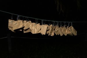 Back at Bellamy, it’s almost 10 p.m.; headlamps illuminate five tables strewn with glue bottles and data clipboards. “We have 15 minutes before we have to release,” calls Holliday. Bags still hang from the clothesline, far too many bats to process as the minutes fly.